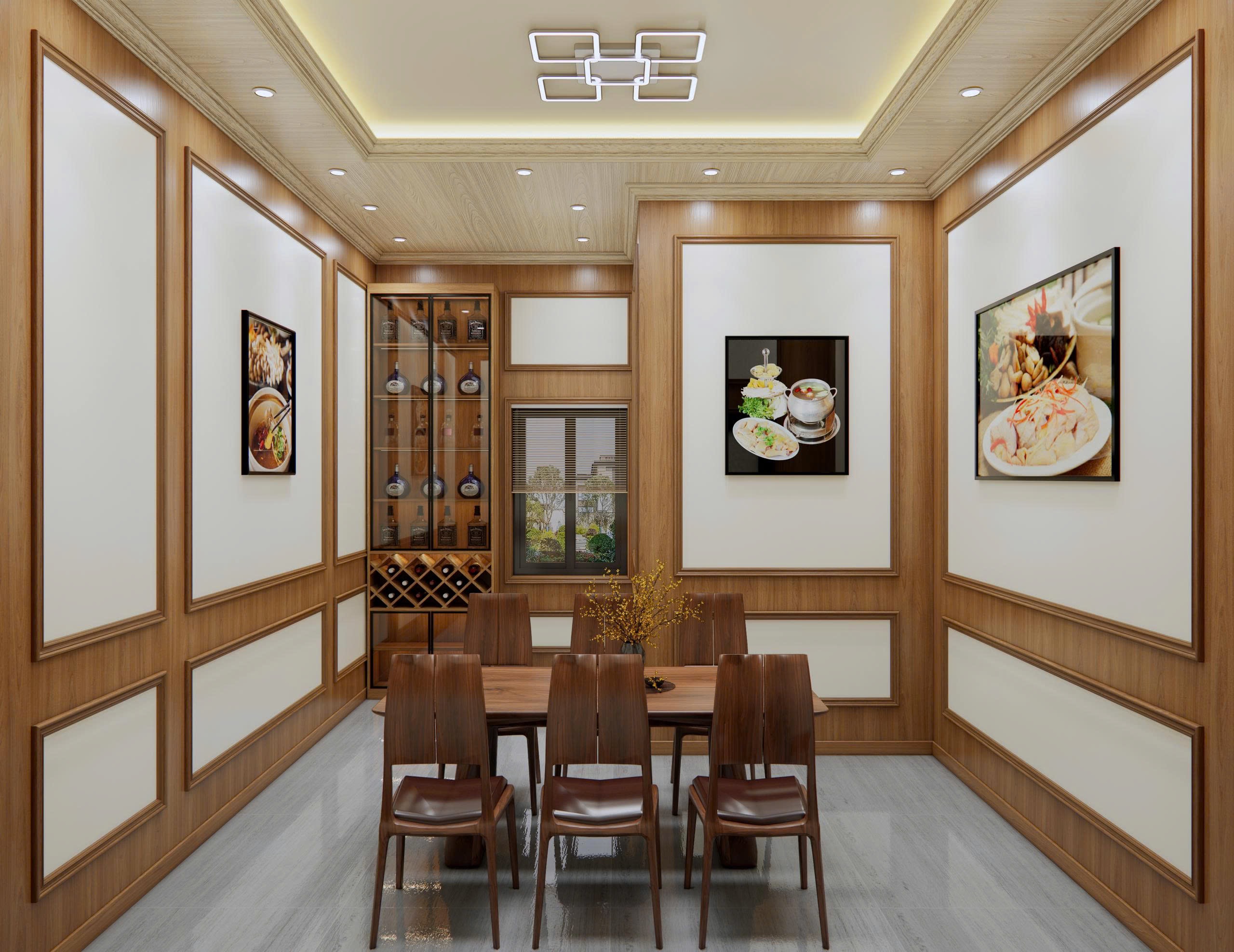 Khi phối cùng hệ đèn led âm trần và phào chỉ viền, không gian trở nên thoáng, sáng và hiện đại hơn hẳn.
