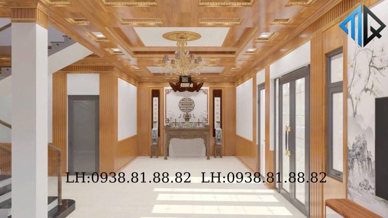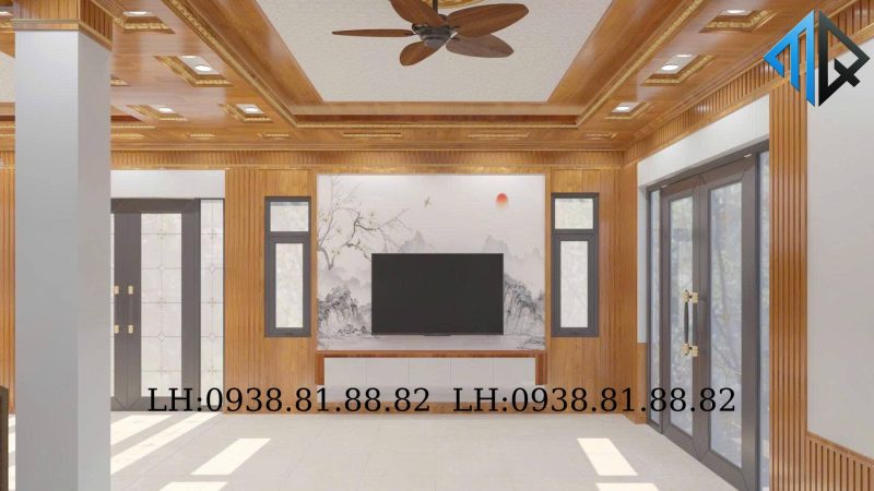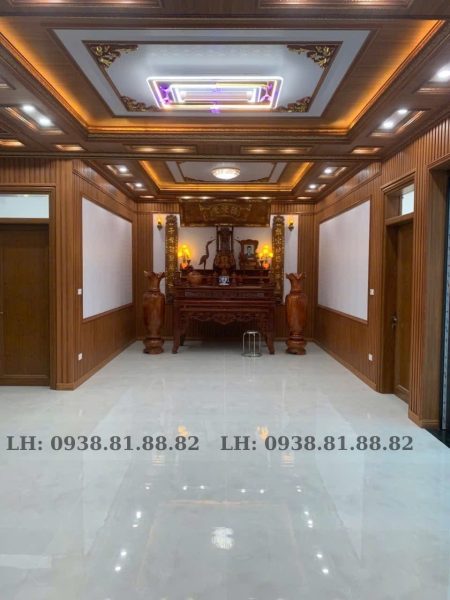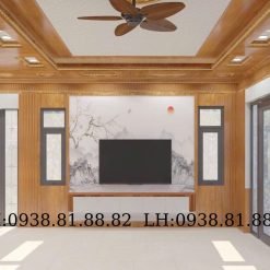 Vật liệu sử dụng: Tấm ốp nhựa Nano MQ, lam sóng, phào chỉ PS hoa văn dát vàng