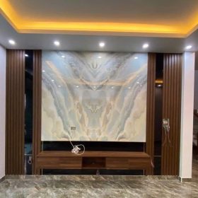 Vách trang trí tivi: phong cách tân cổ điển hoặc hiện đại, kết hợp phào chỉ PS dát vàng, mang lại vẻ đẹp đẳng cấp.